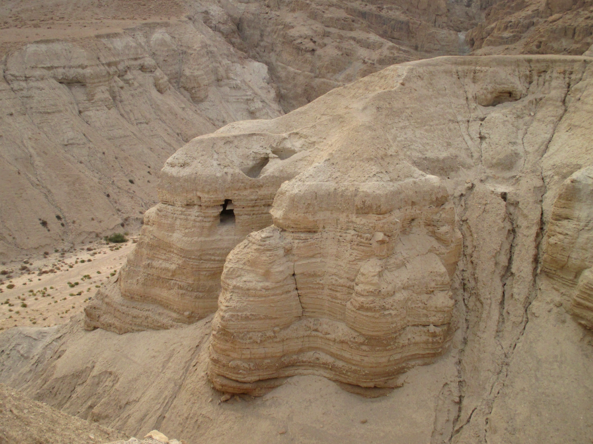 The caves just left of center are where the Dead Sea Scrolls were found.
