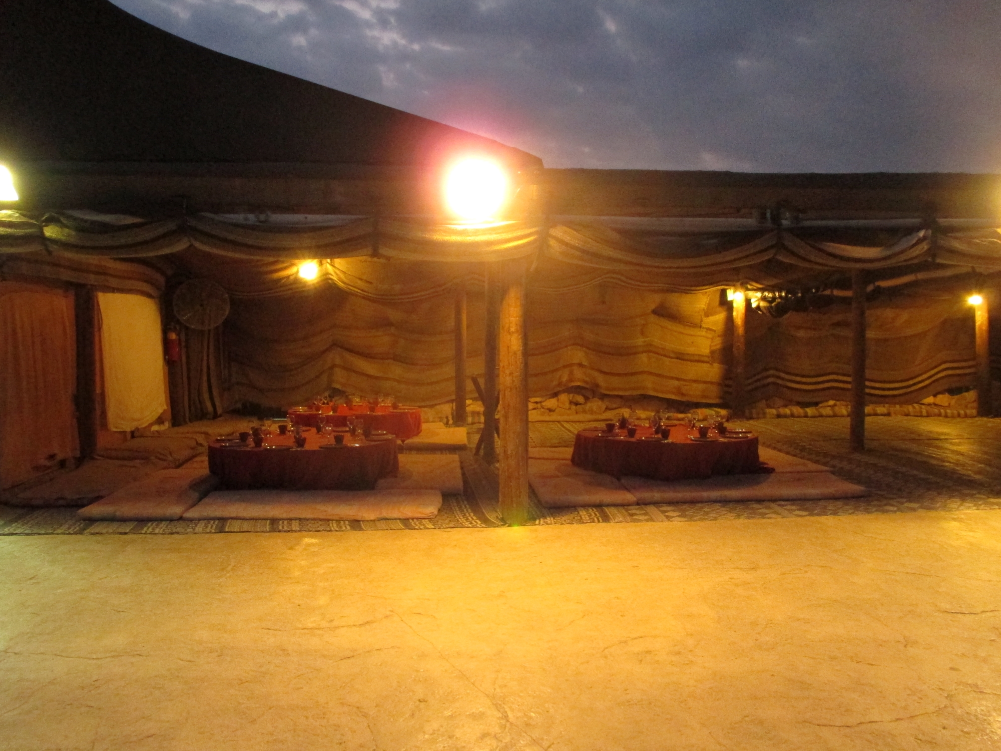 We arrived at a sort of interactive show for tourists called "Abraham's Feast" where we could ride camels and eat a traditional meal. The camels were amusing, if not terribly cooperative. But the meal was amazing. We sat on the ground around circular tables and the food was brought out to us. Hyssop was everywhere. The main course was chicken in date honey and beef kebab with cardamom. Dried fruit including dates, apricots, and raisins were the dessert. And there were three choices for an after dinner drink: coffee with cardamom, mint tea boiled with sugar then poured off, and olive tea served with a cinnamon stick. Between the Dead Sea, Masada, and this meal, it was probably my favorite day of the trip.