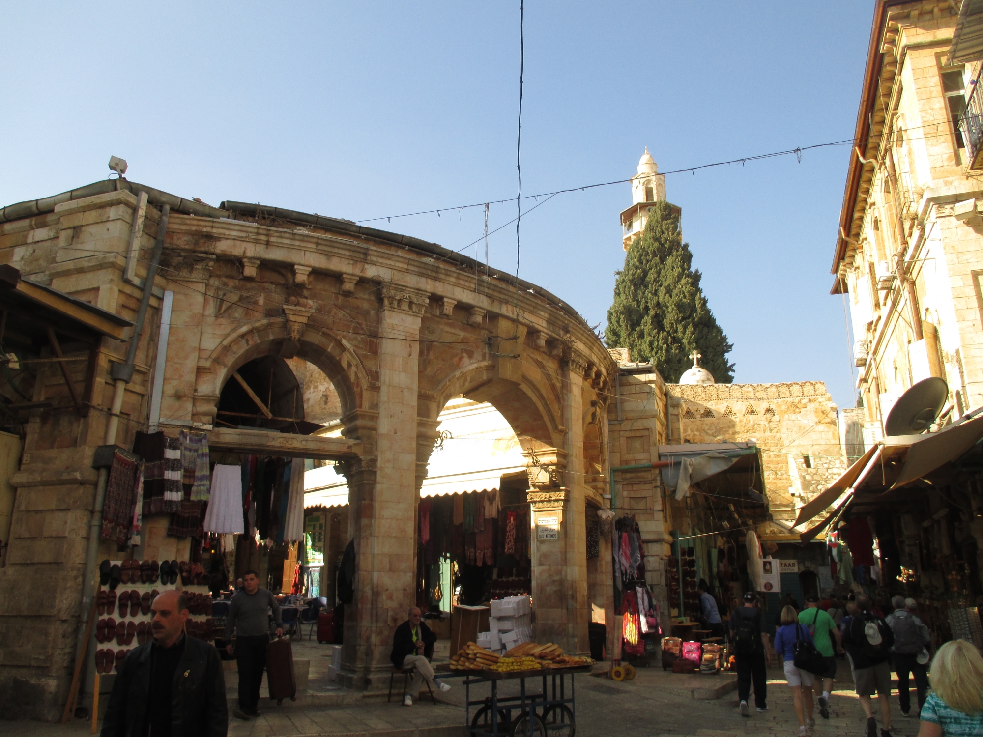 This is where the ancient market in Jerusalem was (contrast with the modern one above) but the canopy is entirely artistic rather than an attempt at being authentic.