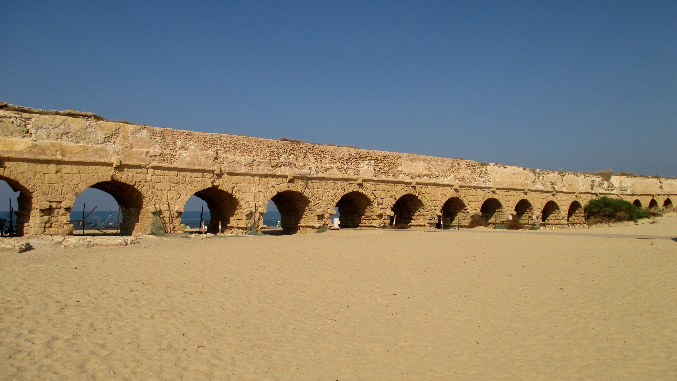 The Roman aqueduct leading to Caesarea. It goes on as far as the eye can see.