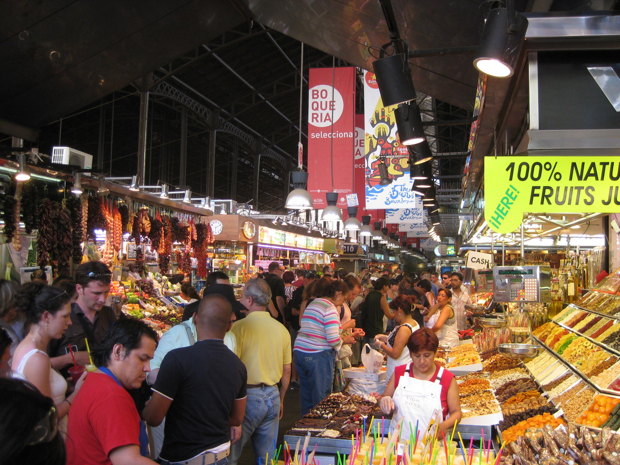 Inside “La Boqueria” - a huge indoor food market in the middle of Barcelona’s busiest pedestrian thoroughfare.