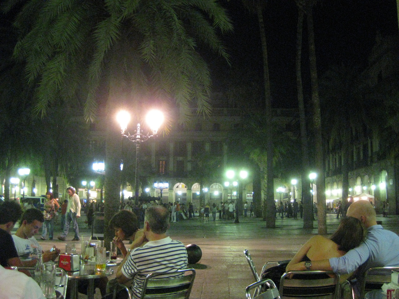 Barcelona’s nightlife starts late with a dinner time that ranges from 9 to midnight. And a lot of the restaurants, like this one, are outside.