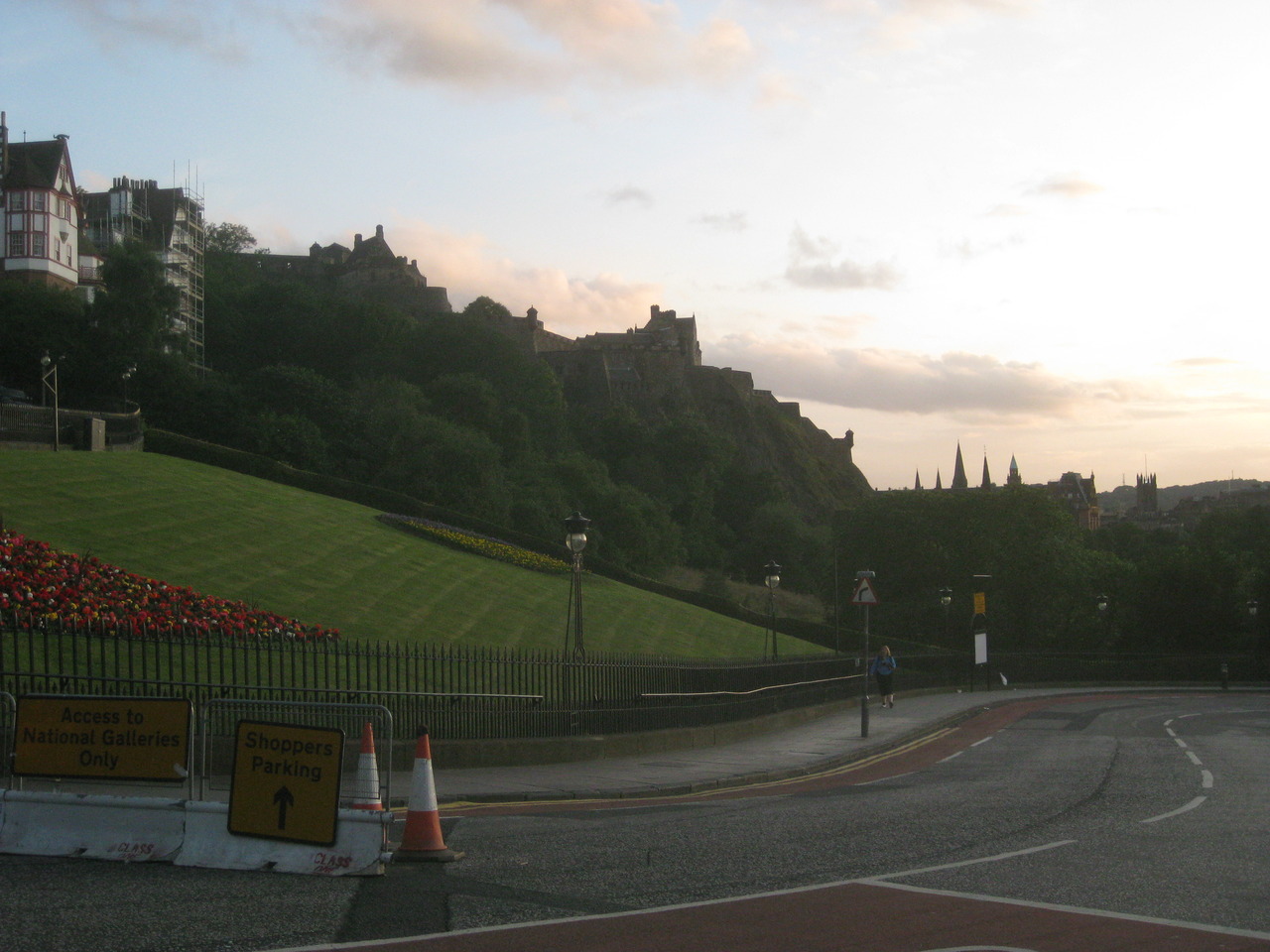 By BrendanCastle Rock from below and to the side. I remember the skies in Edinburgh constantly being that color during twilight.