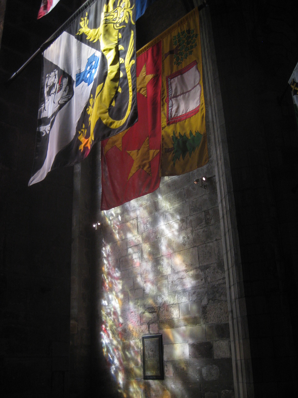 By BrendanLight through stained glass and flags inside of St. Giles Cathedral in Edinburgh. It’s the midpoint of the “Royal Mile” on High Street.