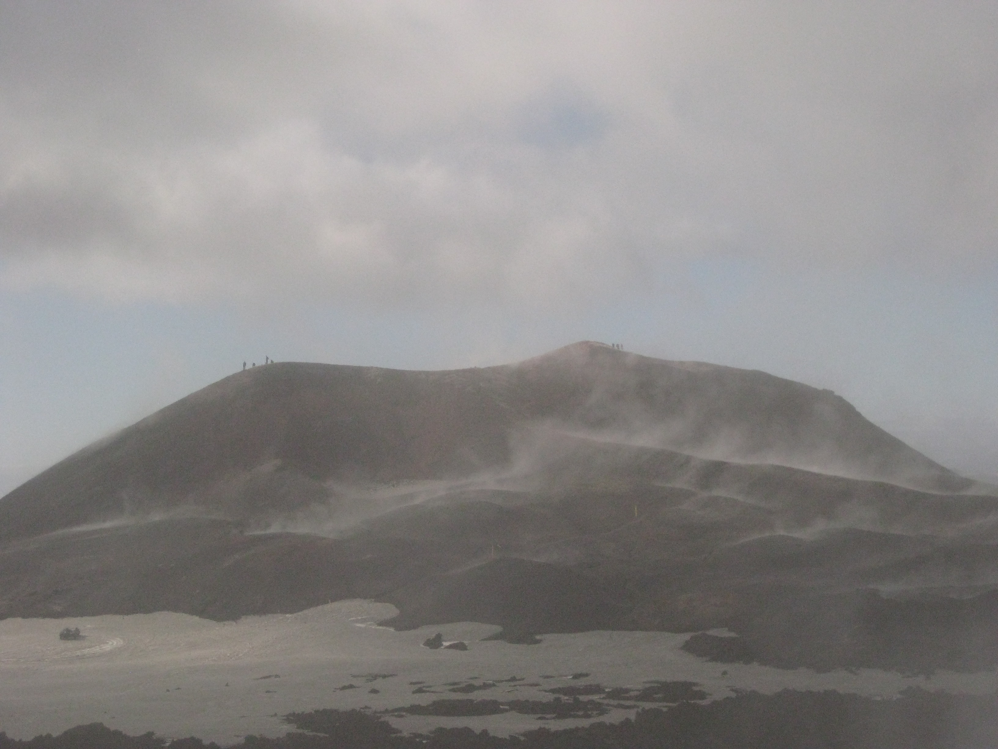 From near the volcano the long descent looks long and ominous, with no signs of civilization in sight.