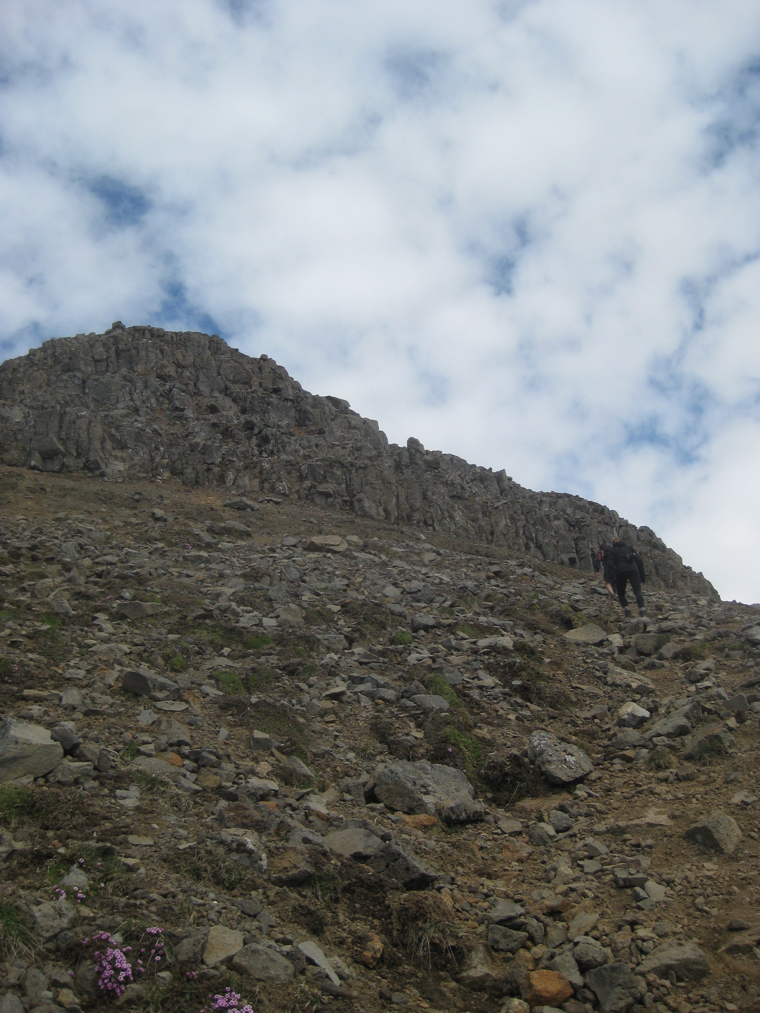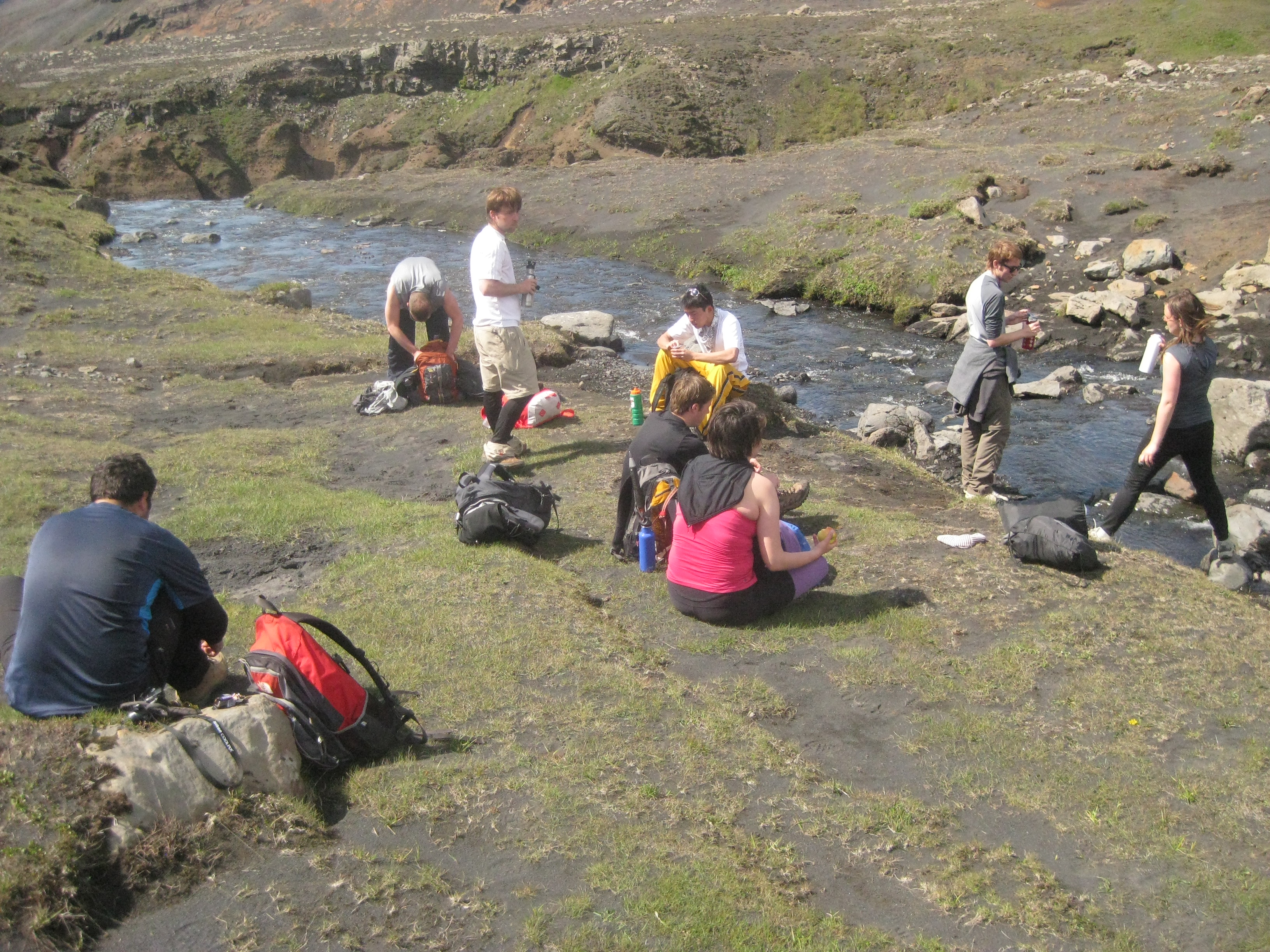 When we finally get a glimpse of the Krossá river valley below it is washed in sunlight. My spirit soared at the uplifting feeling of having our destination in sight. It would take another couple hours of hiking to actually reach it, but just being able to see it was enough for a final spurt of energy to reach the bottom.