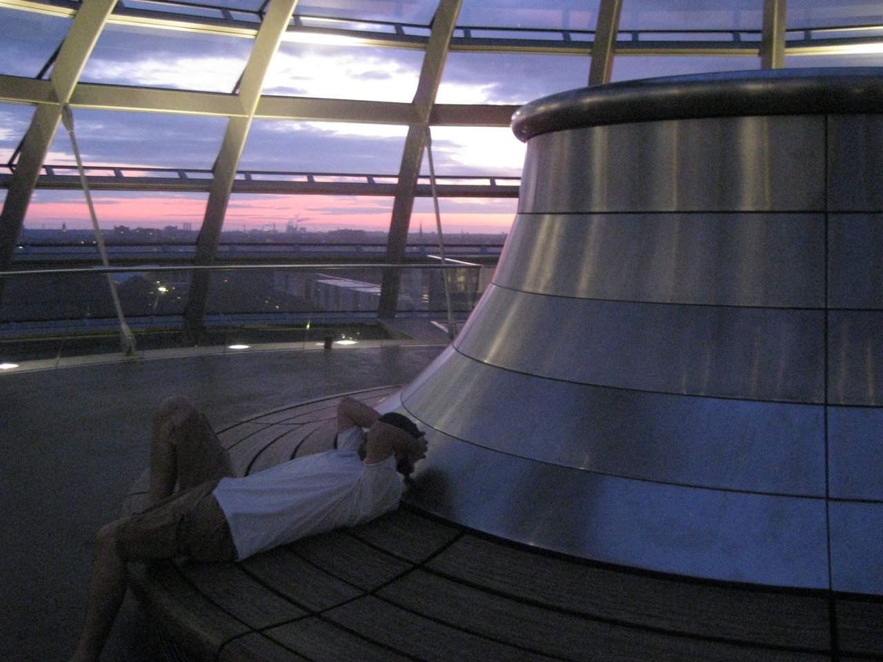 Joe lounging on top of the dome on the Reichstag. There’s a transparent floor where the people can actually watch the legislature doing their job.